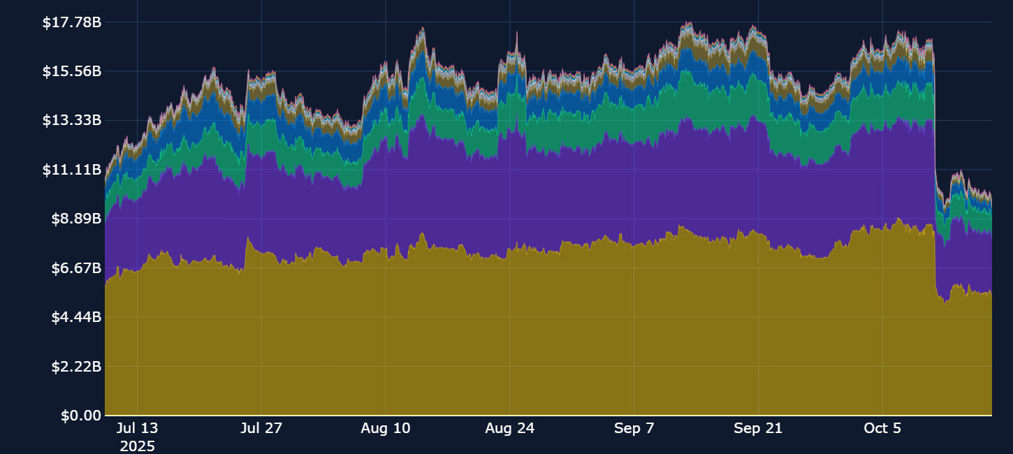 However, the low volatility trend has finally broken out, and aggressively, too. That was a result of a $19B liquidation in leveraged crypto asset positions, the largest in crypto’s still relatively nascent existence. The liquidation cascade occurred as crypto prices tumbled on Friday, Oct 10, 2025, following a reignition of the tit-for-tat trade war between the US and China. In response to new export controls on rare earth minerals from Beijing, President Trump responded that “the United States of America will impose a tariff of 100% on China, over and above any tariff that they are currently paying.” Trump’s message, combined with thinner liquidity as traditional equity markets closed for the weekend, fueled the obliteration of leveraged positions.