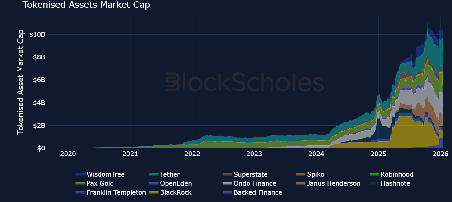 Figure 1. Market cap of tokenised assets since 2020. Sources: Artemis, Block Scholes